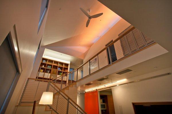 當班尼特和歐哈拉在炎熱的一天第一次踏進這座未來住宅,這里的降溫系統(tǒng)讓他們印象深刻。房子向南的窗戶外有傾斜的屋檐,能在一天最熱的時候擋住太陽光,但在冬天又不會妨礙斜照的陽光溫暖屋子。房屋的墻壁比普通房子更厚,能起到更好的隔熱和保溫效果,而屋頂?shù)牟牧蠒㈥柟夥瓷涠皇俏?。拋過光的混凝土地板也能更好地隔熱保溫。這棟房子所用的混泥土參雜有天然的火山灰以減少水泥的使用,降低二氧化碳排放。